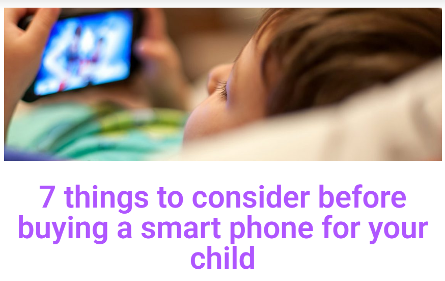 An article by Thrive Academy (they hosted a digital resilience workshop for parents/carers and pupils last year) "7 things to consider before buying a smartphone for your child"